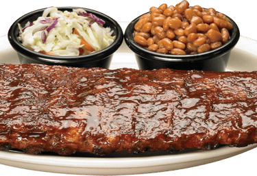 Tender fall of the bone pork ribs smoked low and slow with our house rub and choice of sauces